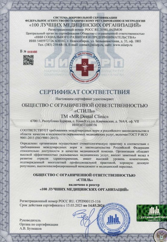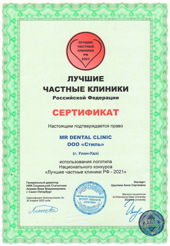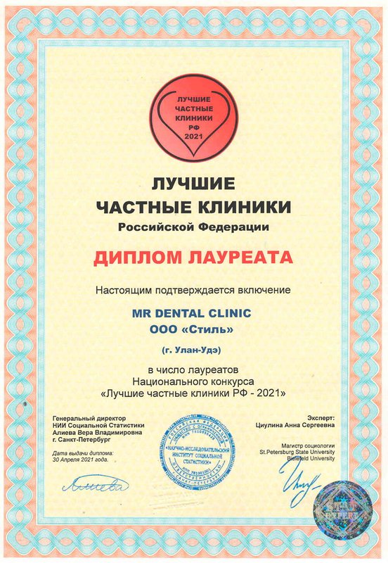 Я уже много лет обращаюсь в эту клинику и каждый раз убеждаюсь в отличном профессионализме сотрудников. Хочу выделить Валентину Сергеевну, которая занималась установкой моих брекетов, и Саяна Аюшеевича, он раньше удалял мне зубы. В этот раз тоже обратилась к нему на удаление зуба мудрости, всё прошло замечательно: вчера была операция, а сегодня уже нет ни боли, ни отёка, восстановление идёт быстро.